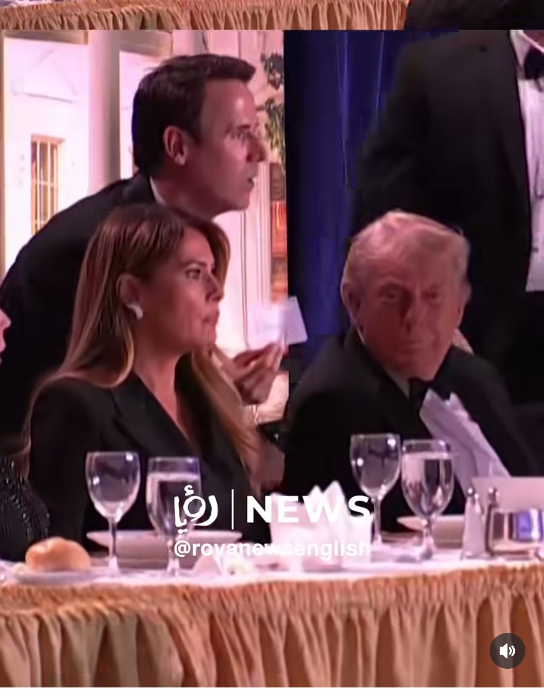 Meja Presiden Trump dan istri saat saat jamuan makan, kemudian terdengar letusan keras. Sabtu malam 24 waktu setempat ayau Minggu pagi waktu Indonesia Barat. Foto: News