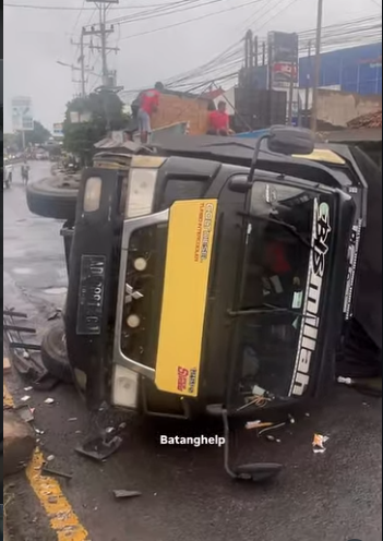Hindari Jalan Berlubang Truk Terbalik di Jalur Sambong Batang, As Roda Hingga Patah