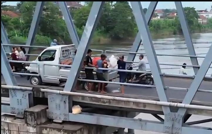 Kepedulian warga sekitar Polos layak diacungi jempol, ketika berhasil menangkap gambar lewat video dan foto, aksi pembuangan limbah secara liar dari atas  jembatan Brantas, Ploso, Jombang, 1 Desember 2025. Foto: Dok/net