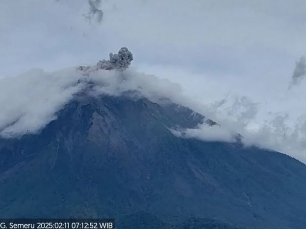“Terjadi erupsi Gunung Semeru pada hari Selasa, 11 Februari 2025, pukul 07.11 WIB. Tinggi kolom letusan teramati sekitar 700 meter di atas puncak atau sekitar 4.376 meter di atas permukaan laut,” kata Petugas Pos Pengamatan Gunung Semeru, Liswanto, dalam laporan tertulis yang diterima di Lumajang.