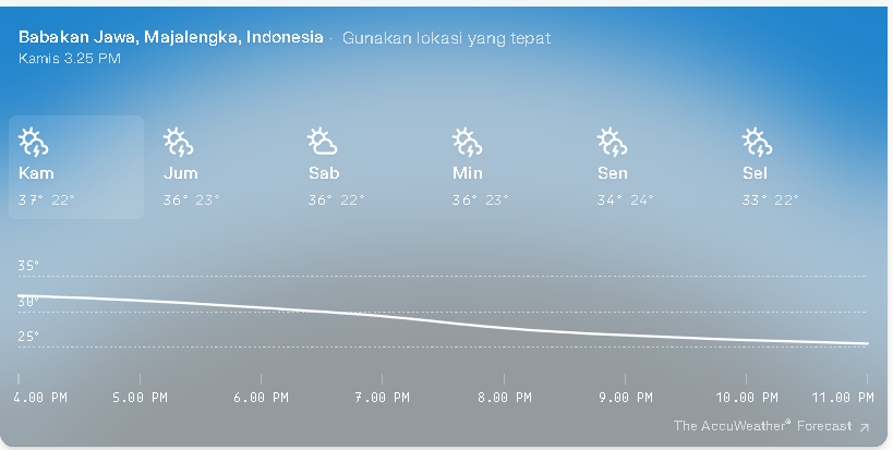 KREDONEWS.COM, JAKARTA– Daerah bersuhu tertinggi di Pulau Jawa saat ini adalah Majalengka di Jawa Barat dengan suhu mencapai 37,6 derajat Celsius, menurut catatan BMKG pada 14 Oktober 2025, demikian data yang didapat dari BMKG, Kamis 16 Oktober 2025.