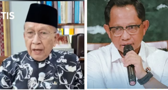 (Kiri) Mantan Menlu Malaysia, Tan Sri Rais Yatim mengritik keras pernyataan Mendagri Tito Karnavia, yang menolak bantuan Rp 1 miliar, warga Malaysia untu krban bencana alam di Aceh, Sumur dan Sumbar. Foto: Instagram@voktis/kemendagri dan titiokarnavia