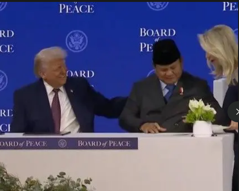 KREDONEWS.COM, DAVOS– Presiden AS Donald Trump menepuk punggung Presiden Prabowo Subianto dan memujinya sebagai “pria tangguh” saat penandatanganan Piagam Dewan Perdamaian (Board of Peace) di Davos, Swiss.